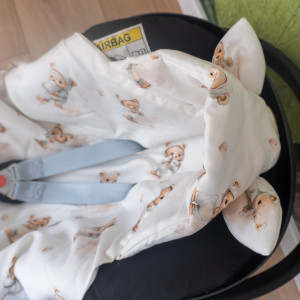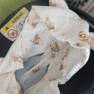 Otulacz do fotelika jest łatwy w użyciu i dzięki wycięciu na pasy można go łatwo przypiąć do fotelika samochodowego, aby zapewnić dziecku bezpieczeństwo podczas jazdy. Kocyk do fotelika jest także łatwy w utrzymaniu czystości i można go prać w pralce.