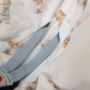 Produkt posiada wycięcie na pasy 3 punktowe lub 5 punktowe, dzięki czemu maluszek może być zapięty wewnątrz otulacza, co zwiększa bezpieczeństwo.