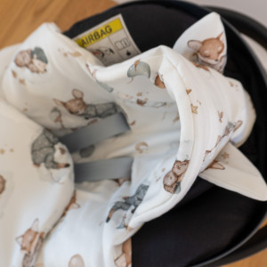 Otulacz do fotelika jest łatwy w użyciu i dzięki wycięciu na pasy można go łatwo przypiąć do fotelika samochodowego, aby zapewnić dziecku bezpieczeństwo podczas jazdy. Kocyk do fotelika jest także łatwy w utrzymaniu czystości i można go prać w pralce.