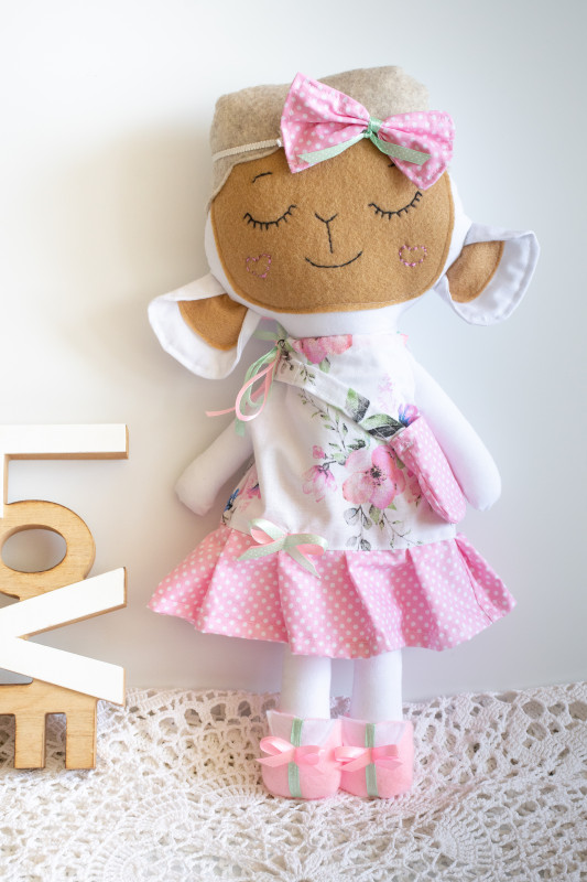 Cena dotyczy owieczki i zestawu ubranek z dodatkami - jest gotowa do drogi.