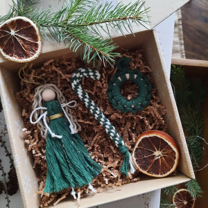 Ozdoba na choinkę aniołek laska zestaw zielony