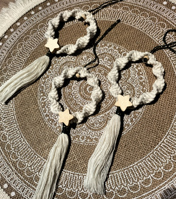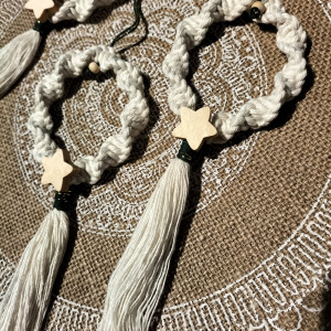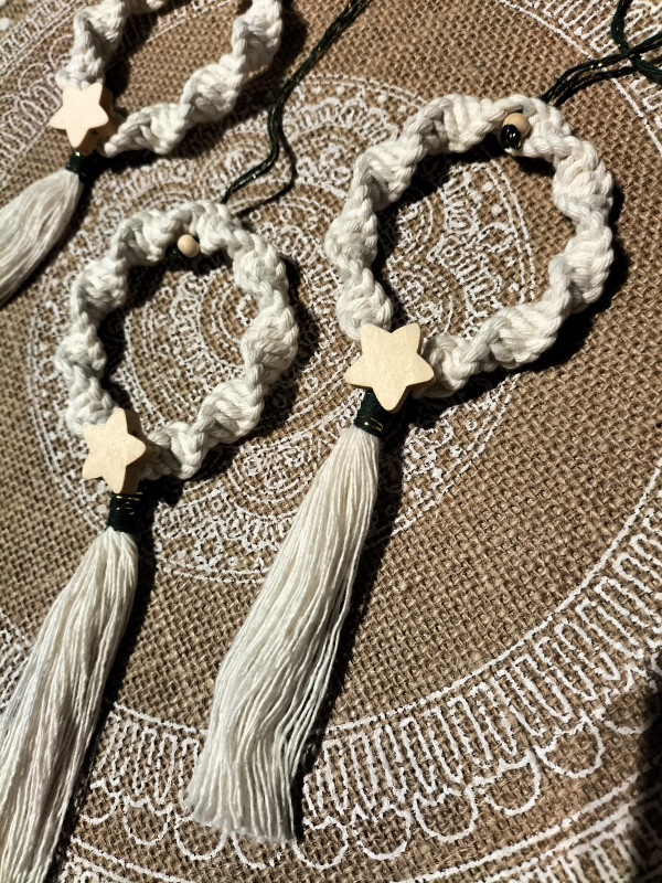 Dodaj ciepła i naturalnego uroku swoim świętom dzięki unikalnym ozdobom wykonanym techniką makramy!Ozdoby mają około 17cm wysokości plus sznurek do zawieszenia.
