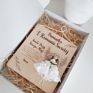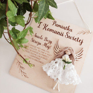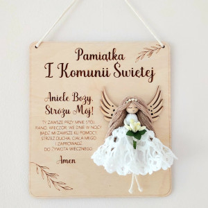 Pamiątka I Komunii Anioł makrama