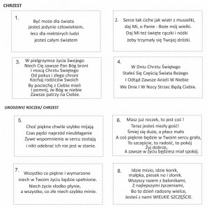 W środku pudełka, na jego wieczku umieszczona została ozdobna kartka z życzeniami. Mogą być to Twoje własne życzenia lub życzenia z zaproponowane przez nas. Przykładowe życzenia znajdziesz w zakładce ze zdjęciami.