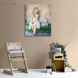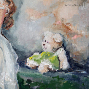Mały pluszowy przyjaciel siedzi obok i gotowy jest rozproszyć każdy smuteczek... Obraz olejny na płótnie, utrzymany w delikatnych, pastelowych odcieniach, werniksowany. Boki pomalowane na kolor biały. Sygnowany.