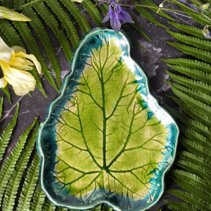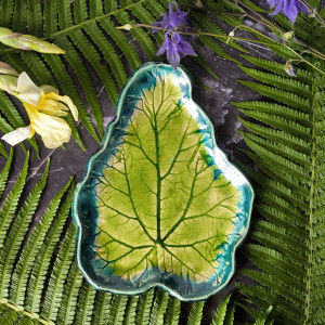 Patera z odbiciem liścia rabarbaru w rozmiarze L