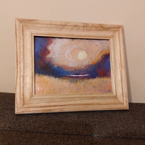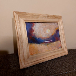 Praca wykonana pastelami olejnymi na papierze przeznaczonym do pasteli 200g/m2, format A5, rama szerokość 4 cm. cały obrazek 27/5 na 22/5 . Zapraszam :)