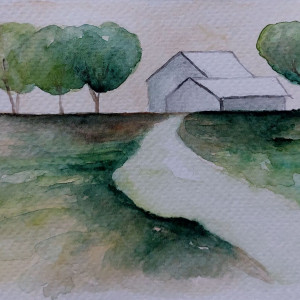 Pejzaż-kartka pocztowa ,akwarela