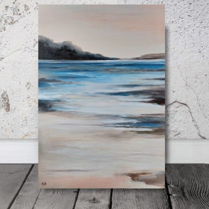 Praca Pejzaż to obraz namalowany farbami akrylowymi na podobraziu o wielkości 100/70 cm.