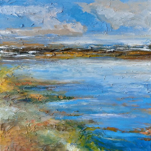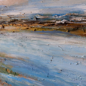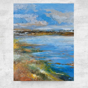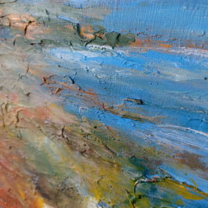 Praca Pejzaż to obraz namalowany farbami akrylowymi na podobraziu o wielkości 50/40 cm.