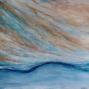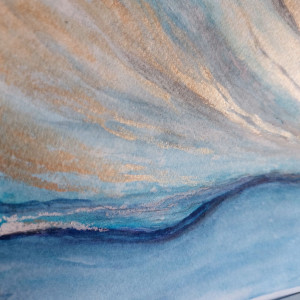 Pejzaż ze złotem -akwarela formatu 25/25 cm