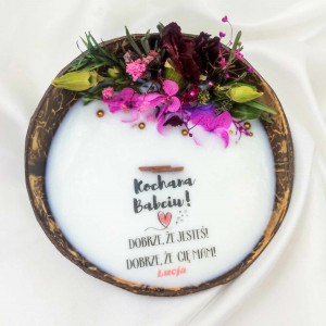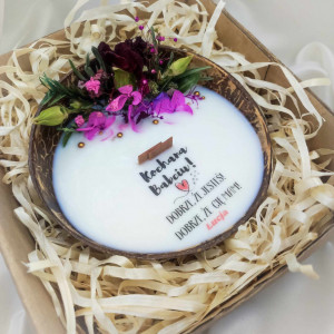 Czy poszukujesz niezwykłego i osobistego prezentu, który wyrazi Twoją miłość i szacunek wobec Kochanej Babci z okazji jej święta? Nasza personalizowana sojowa świeca w łupinie kokosa z Twoim wybranym napisem to idealny wybór!