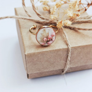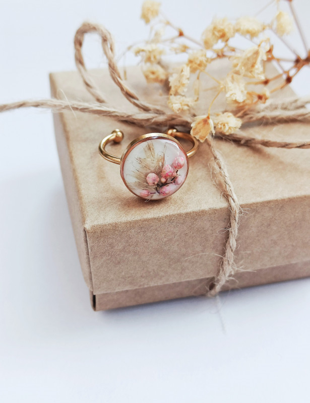 Pierścionek z żywicy z kwiatem ozothumnusa