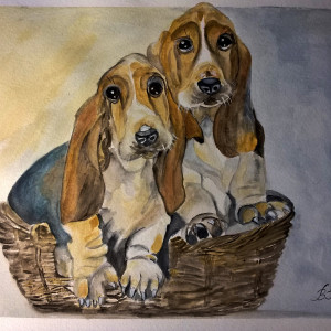 Pieski, akwarela. Format A4/ 21x29,7 cm