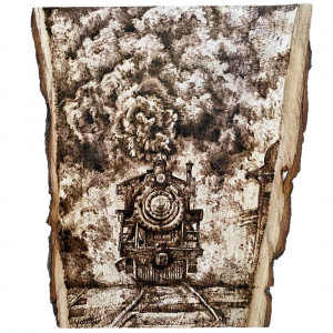 Unikalne dzieło sztuki stworzone techniką pirografii.