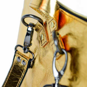 Złoty plecak na zamek z czarną podszewką wodoodporną w środku oraz z regulowanymi paskami