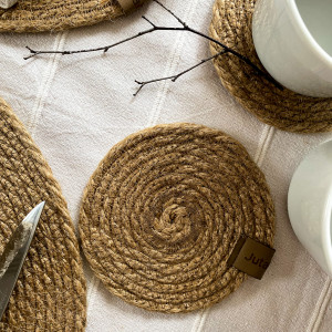 Ręcznie wykonana podkładka pod filiżankę z naturalnej liny jutowej to stylowy dodatek dla Wszystkich miłośników stylu boho, natural oraz skandynwski. Estetyka wykonania i dbałość o każdy szczegół podkładki sprawi, że goście na Twoim domowym przyjęciu będą zachwyceni.