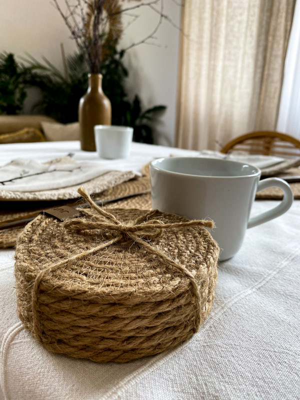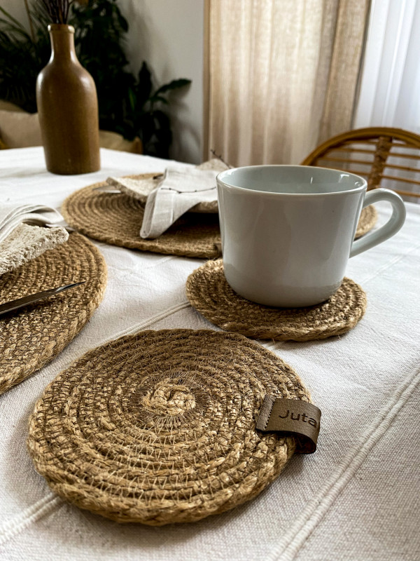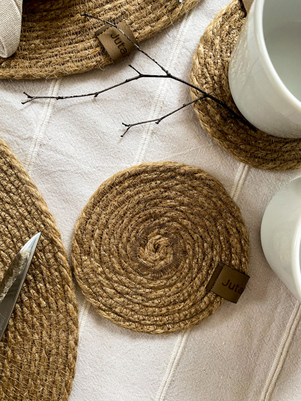 Dodatkowo podkładki z juty ochronią Twoje blaty przed niszczącym działaniem spowodowanym stawianiem na nich gorących szklanek lub kubków.