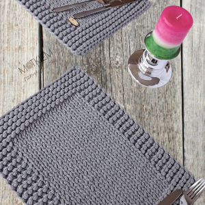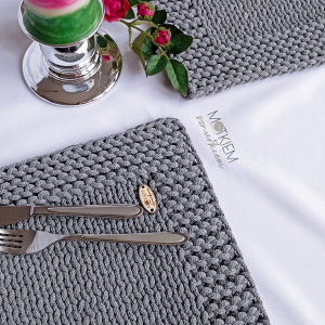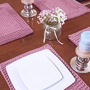 Podkładki stołowe o wymiarze 25/35cm wykonane na drutach z wysokiej jakości sznurka bawełnianego.