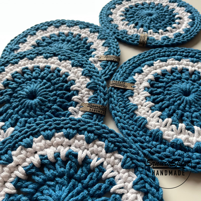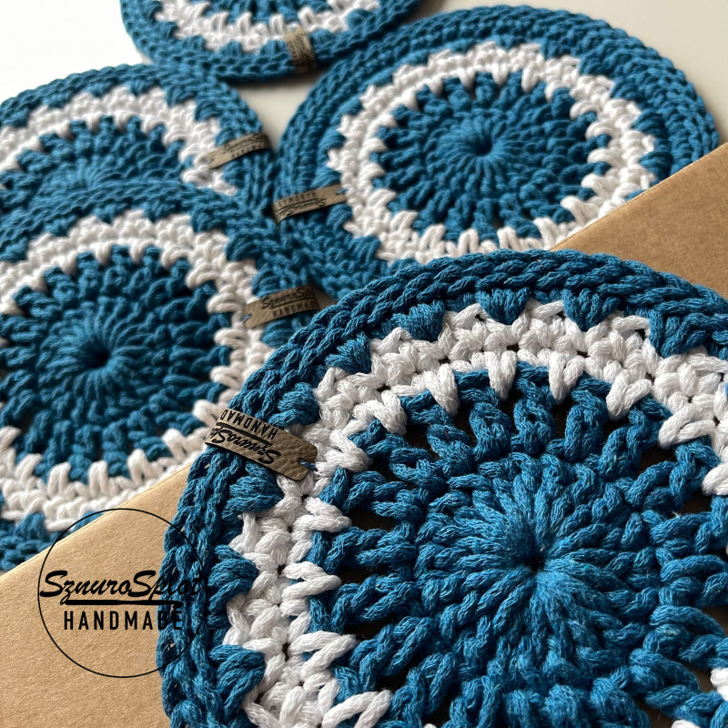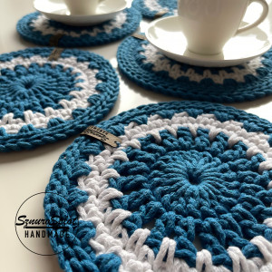 Podkładki na stół ze sznurka bawełnianego szydełkowane na zlecenie klienta.
