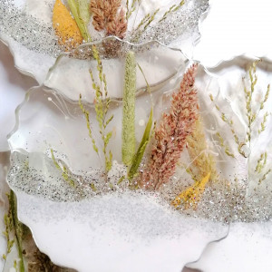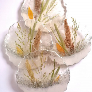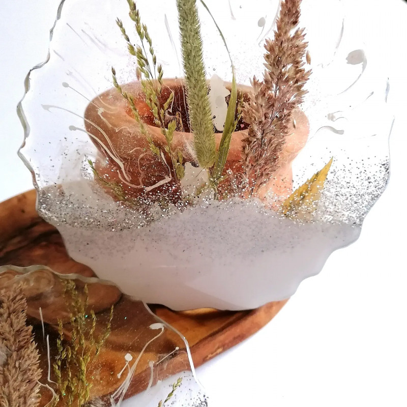 Dekoracyjne podkładki wykonane z żywicy epoksydowej najwyższej jakości. Krystalicznej, odpornej na promieniowanie UV co daje gwarancję, że Wasze podkładki nie wypłowieją i nie zżółkną z biegiem czasu.