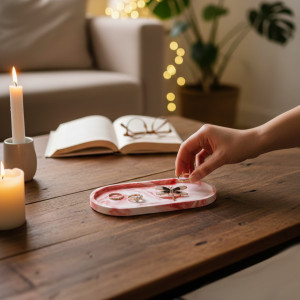 Poszukujesz eleganckiej i funkcjonalnej podstawki na biżuterię? Oto owalna podstawka, która nie tylko przechowuje Twoje ulubione akcesoria, ale także dodaje uroku Twojej przestrzeni. Wykonana z wysokiej jakości gipsu, ta dekoracyjna podstawka zachwyca naturalnymi, delikatnymi odcieniami czerwieni. Idealna na biurko, komodę czy toaletkę – pozwól, by Twoja biżuteria prezentowała się stylowo i z klasą. Odkryj funkcjonalność w połączeniu z estetyką już dziś!