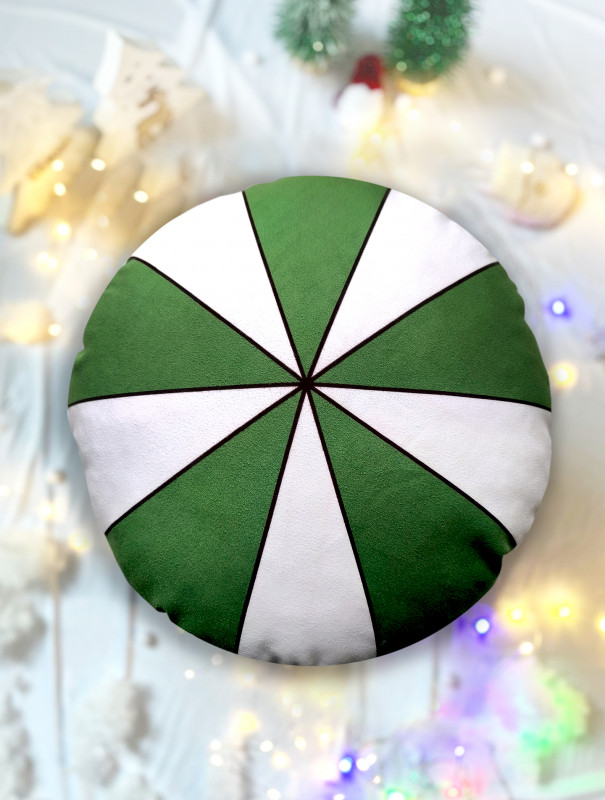 Mamy przyjemność przedstawić Państwu naszą nową ofertę sprzedaży wyjątkowej poduszki, wypełnionej kulką silikonową. Nadruk przedstawia biało-zielony cukierek. Nasza poduszka wykonana jest z wysokiej jakości microfibry, która jest nie tylko miękka i przyjemna w dotyku, ale także bardzo trwała. Posiada nadruk z dwóch stron taki sam. Średnica poduszki to około 35 cm. Będzie cieszyć jako dekoracja świąteczna, lub jako dodatek do prezentu pod choinkę. Jej żywe kolory dodadzą świątecznej atmosfery każdemu pomieszczeniu.