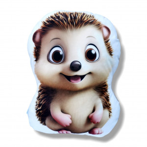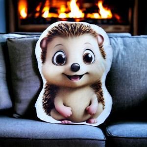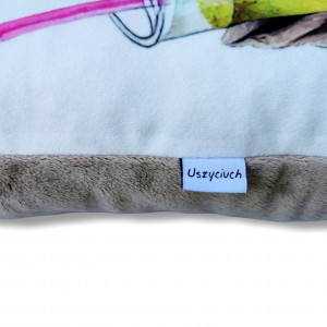 Stylowa ozdobna poduszka uszyta z mikrofazy z wzorem jeżyka i z mięciutkiego polaru minky w kolorze beżowym.