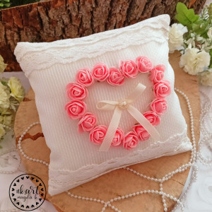 Poduszka na obrączki w kolorze brudnego różu i ecru!
