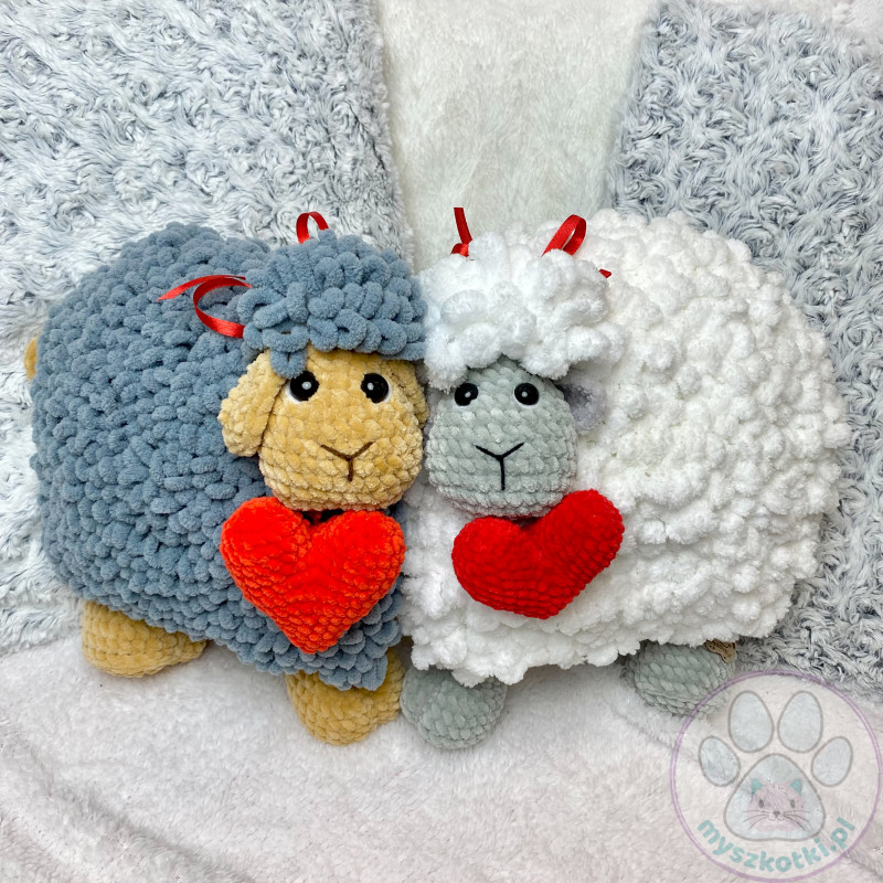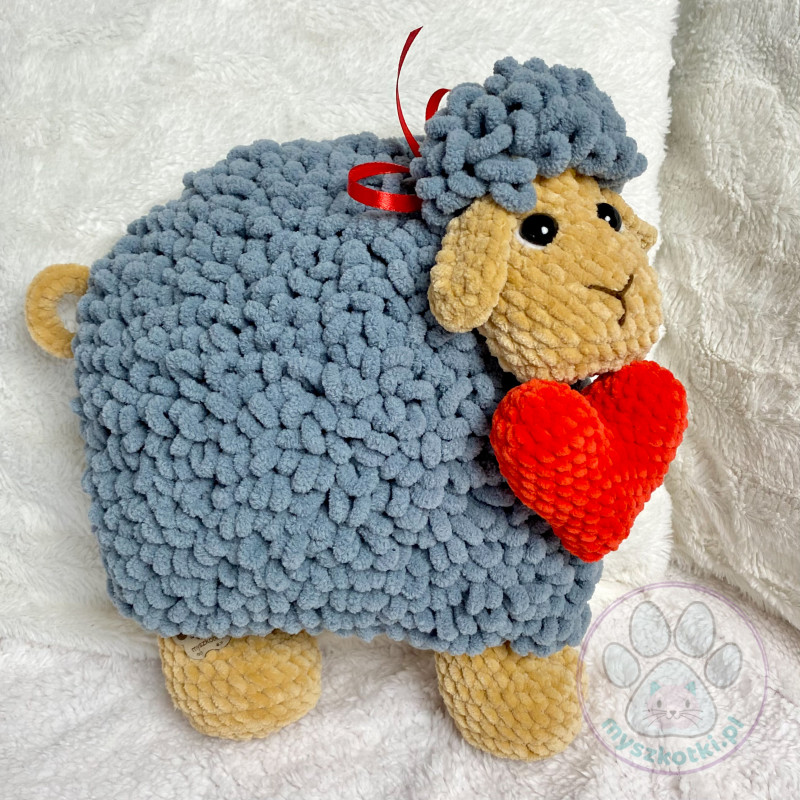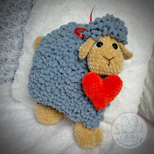 - na szyi ma zawieszone serduszko (również wykonane ręcznie z atestowanych włóczek szenilowych)