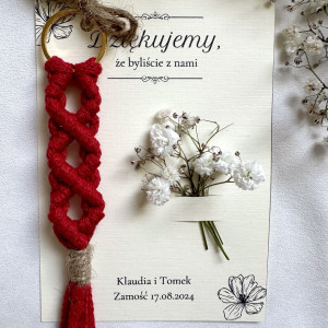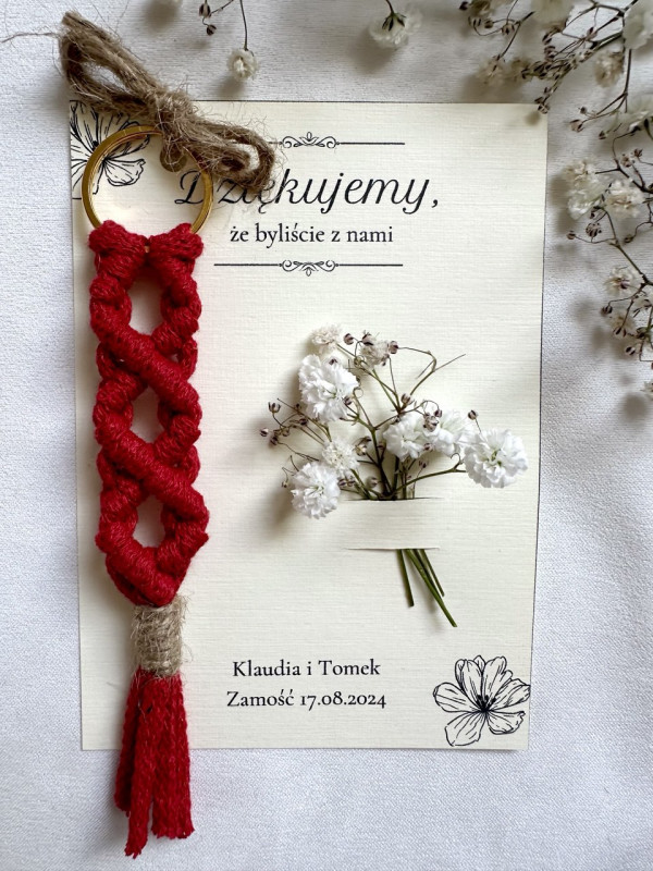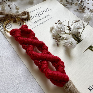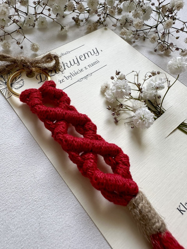 Podziękowania dla gości weselnych boho, breoloczek makrama czerwona