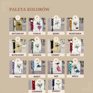 1. Oferujemy breloczki makrama w różnych kolorach, aby dopasować je do charakteru Twojego wesela. Wzornik kolorów sznurka znajduje się w zdjęciach. Wpisz wybrany kolor w komentarzu do zamówienia.