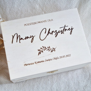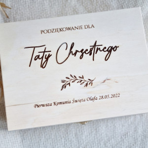 Grawerowana skrzynka drewniana na prezent dla rodziców chrzestnych, dziadków.