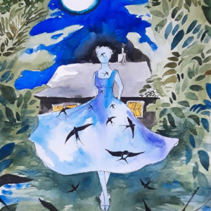 "Poezja" akwarela artystki plastyka Adriany Laube wykonana na białym 300g papierze A3 (42cm x 30cm). Praca sygnowana. Wysyłana w dobrze zabezpieczonej, kartonowej tubie, by dotarła do Państwa w idealnym stanie.