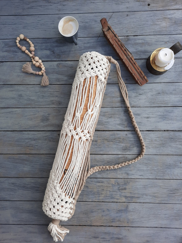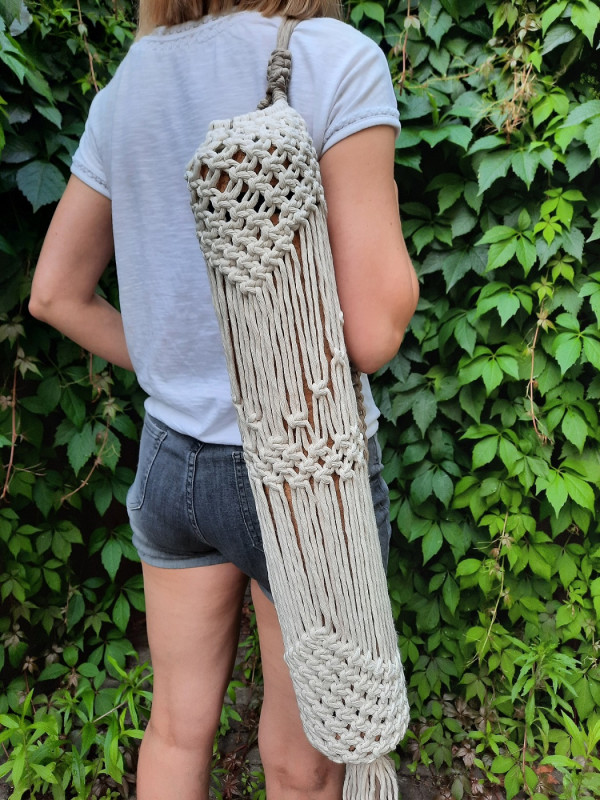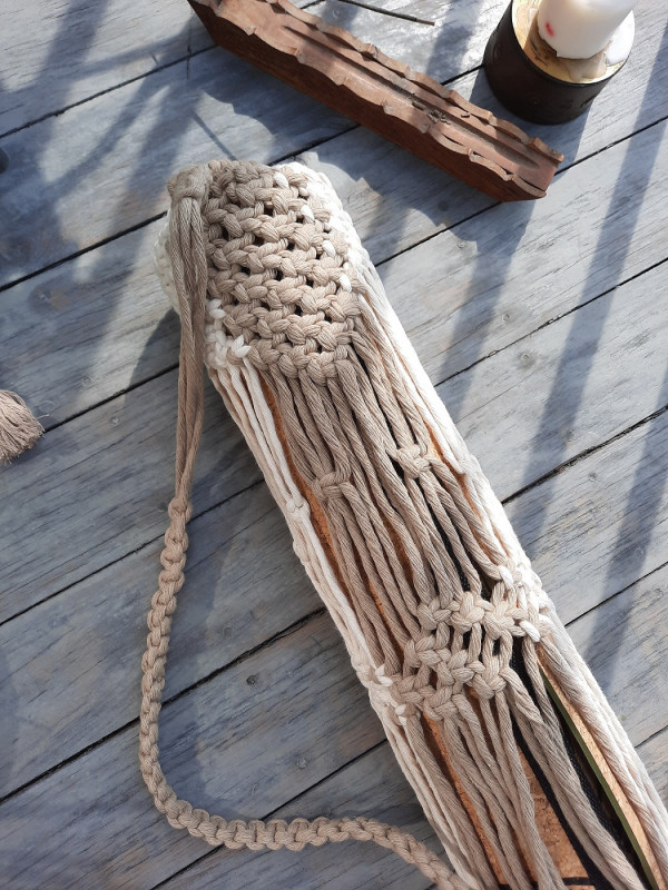 Oryginalny pokrowiec na matę do jogi ręcznie robiony techniką makramy.