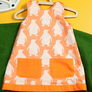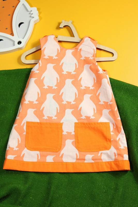 Pomarańczowa sukienka dwustronna z kotkiem (86 cm)