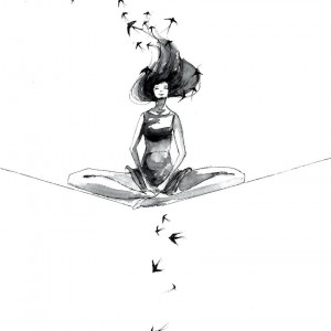 "Ponad szczęściem" akwarela z dodatkiem piórka wykonana przez artystkę plastyka Adrianę Laube na białym 300g papierze A3 (42cm x 30cm).