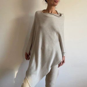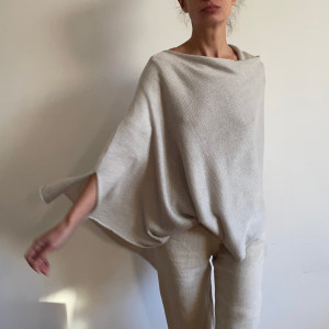 Preferowane ręczne pranie w letniej wodzie, w płynie do delikatnych tkanin, suszyć w poziomie lub pionie, uformować po długości ściegu. Prasować, jeśli taka potrzeba, żelazkiem najlepiej z parą.