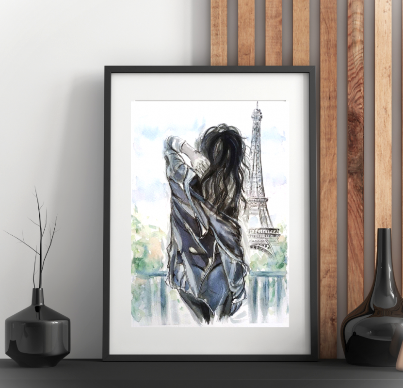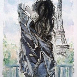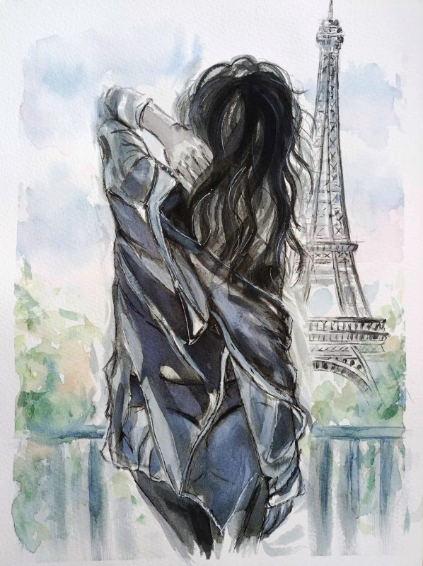 ,, Poranek w Paryżu,,- obraz namalowany akwarelami na papierze o wymiarach 31x23 cm.