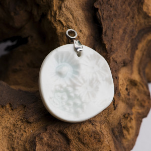 Leciutka porcelanowa zawieszka z wytłoczonym wzorem inspirowanym rafą koralową.