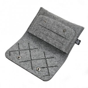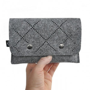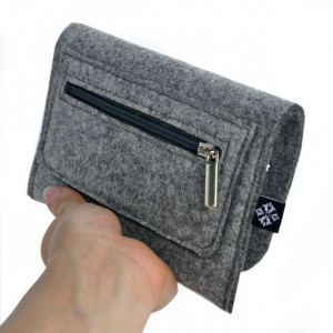 Nasz ażurowy portfel z filcu spodoba się zapewne wszystkim kobietom ceniącym sobie niebanalne rozwiązania. Aby materiał się nie mechacił, uszyliśmy go stroną impregnowaną na zewnątrz. Przednia klapa ozdobiona drobnym ażurem, zapinana jest na dwa napy. W środku zaś znajdziemy obszerną przegrodę na banknoty oraz mniejszą nacinaną kieszonkę służącą do przechowywania kart. Tył zaś wyposażony został w praktyczną przegrodę zasuwaną na zamek błyskawiczny. Prezentowany portfel filcowy został uszyty ze stuprocentowego filcu poliestrowego. Wymiary