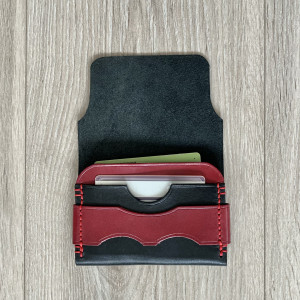 Portfel 100% wykrojony nożem i uszyty ręcznie dwoma igłami bardzo mocnym ściegiem siodłowym.