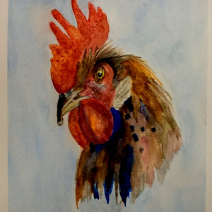 Portret koguta, akwarela. Format A4/21x29,7 cm
