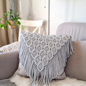 Poszewkę makramową można prać ręcznie, przy użyciu delikatnych środków piorących.