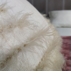 niteczek puchu unoszących się nad powierzchnią tkaniny,