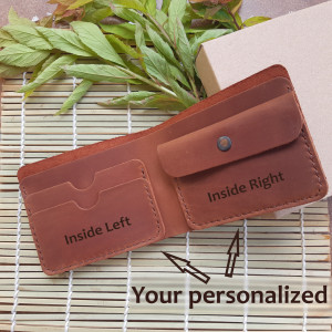 Uniwersalny brązowy skórzany ręcznie robiony portfel grawerowany z kieszonką na monety od Luniko!