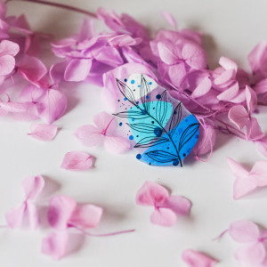 Piękna przypinka ręcznie rysowana na termokurczliwej folii, zabezpieczona lakierem ekologicznym.
