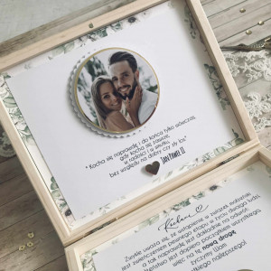 Drewniane, personalizowane pudełko z grawerem.