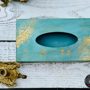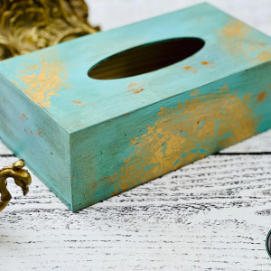 Pudełko na chusteczki, chustecznik, turkusowy, złote wzory