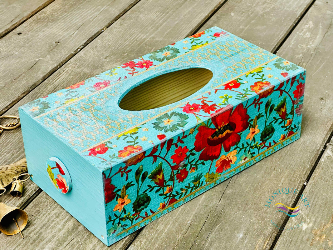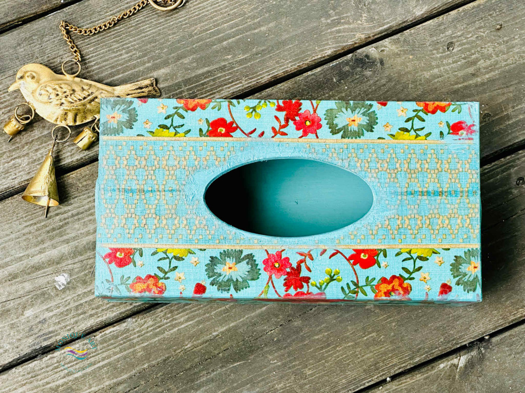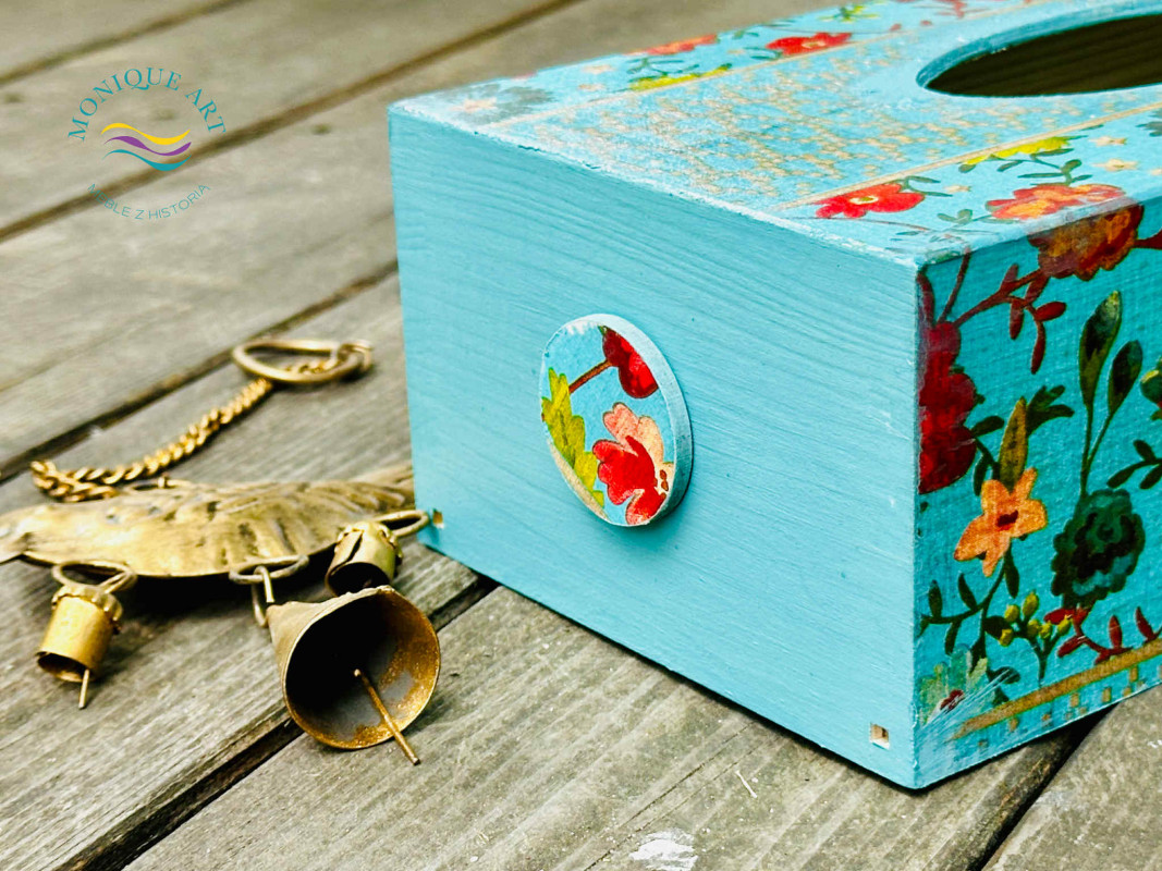 Pudełko na chusteczki, kolorowa dekoracja na stół albo do łazienki